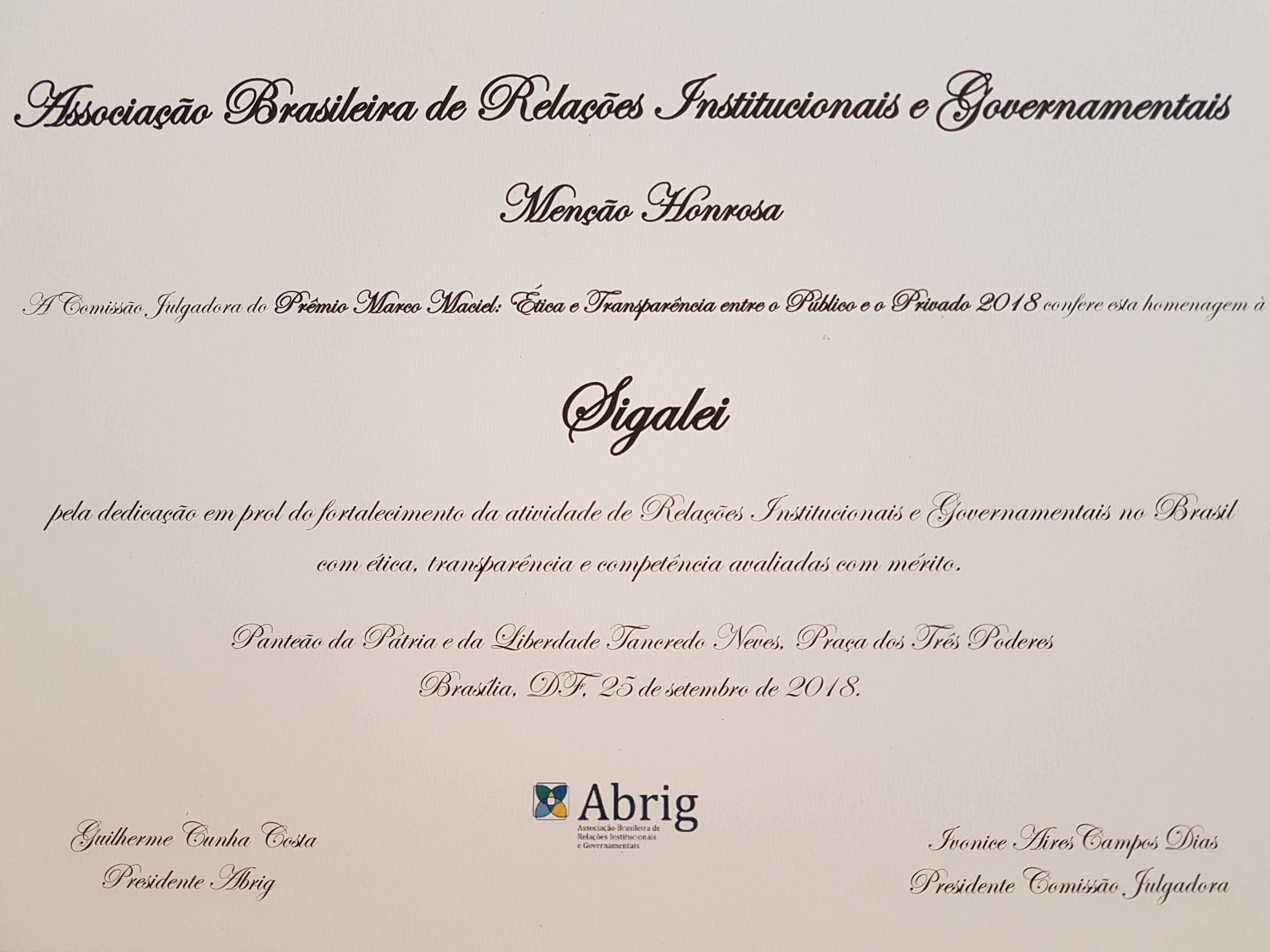 Sigalei conquista o 2º lugar no Prêmio Marco Maciel