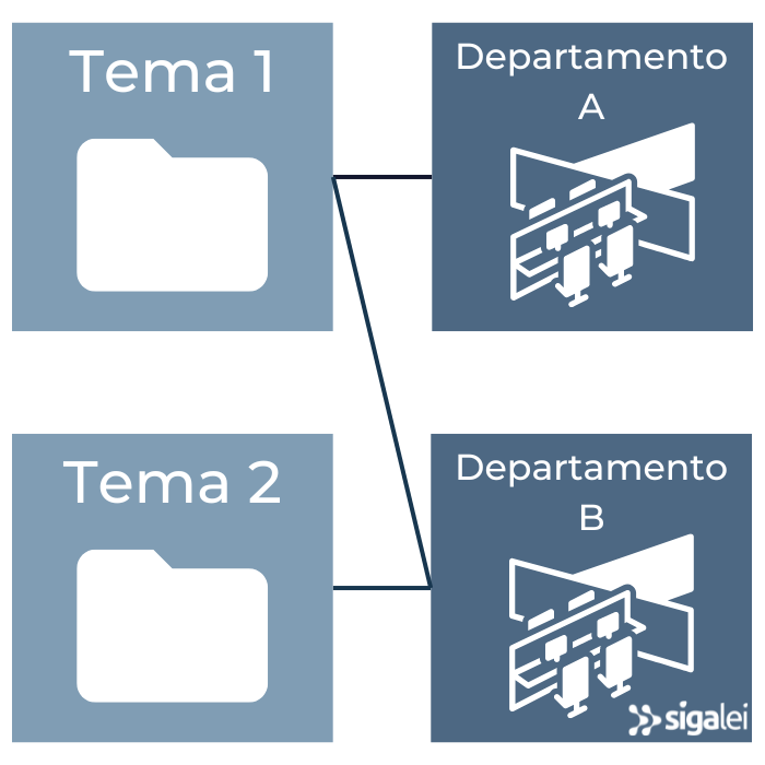 Na Sigalei, chamamos de “temas” as pastas ou gavetas que armazenam todos os documentos que serão capturados, analisados e compartilhados na instituição. Esses temas precisam ser pensados com base na estrutura de tomada de decisão da sua organização.