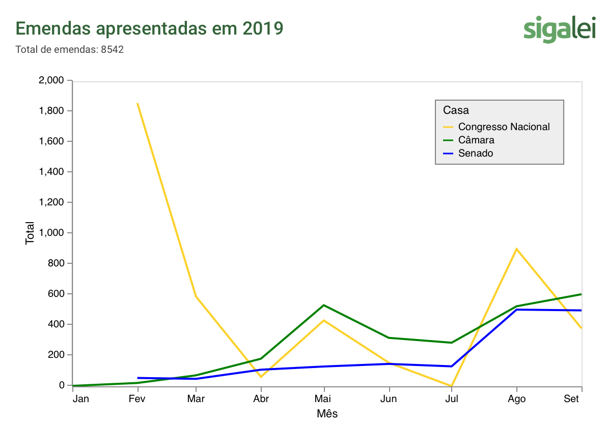 As emendas podem ser apresentadas tanto em projetos que estão sendo analisados na Câmara quanto no Senado ou no Congresso Nacional. Nesse ano foram apresentadas 8542 emendas de redação ou substitutivos a proposições no Congresso Nacional.