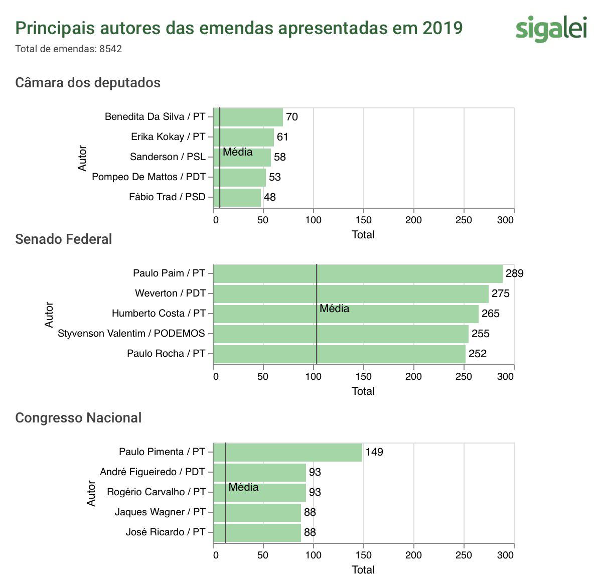 Nas três casas, os parlamentares do PT dominam o uso do instrumento da Emenda no Processo Legislativo.