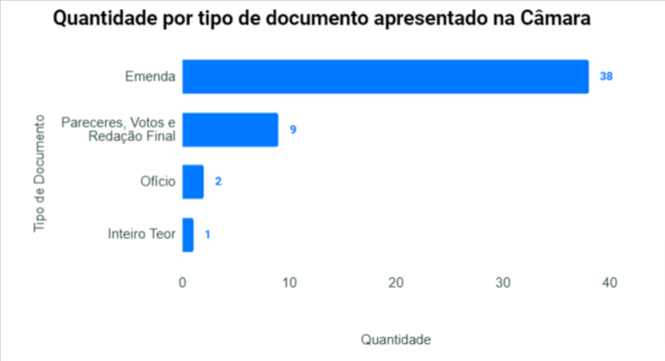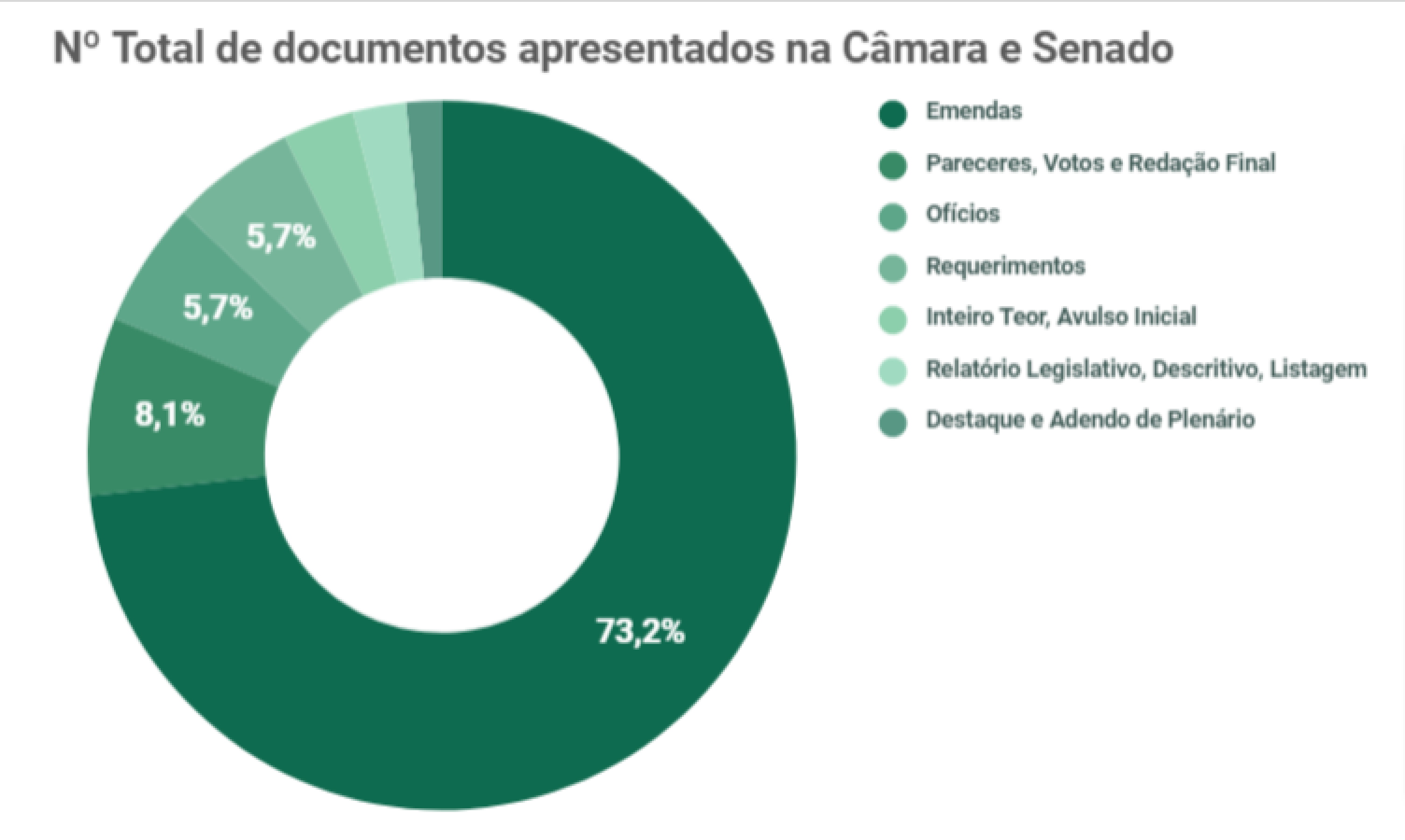OBS: Foram apresentados 75 documentos de Declaração de Voto (DVT) na Câmara, mas estes foram desconsiderados para mapear os stakeholders, pois é um tipo de documento obrigatório para apresentação do voto pelo Sistema de Deliberação Remota (SDR), implementado durante a Pandemia de Covid-19. O que, no fim, não significa um parlamentar mais ou menos ativo, apenas mostra o cumprimento da regra durante o período de votação.