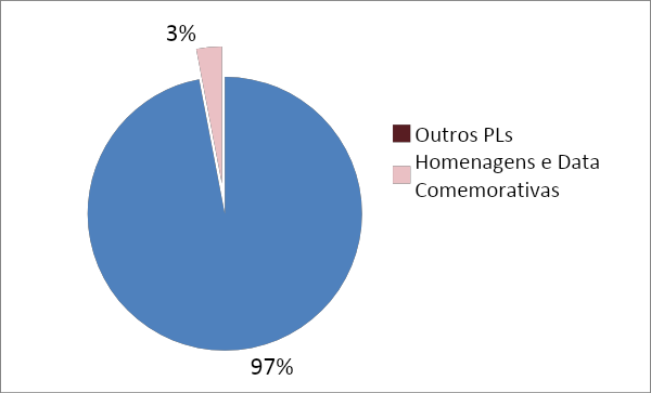 Para se ter uma ideia, os projetos de lei sobre “Homenagens e Datas Comemorativas” correspondem a 3% do volume de projetos. Ou seja, é 7 vezes maior que a produção sobre temas relacionados ao empreendedorismo.