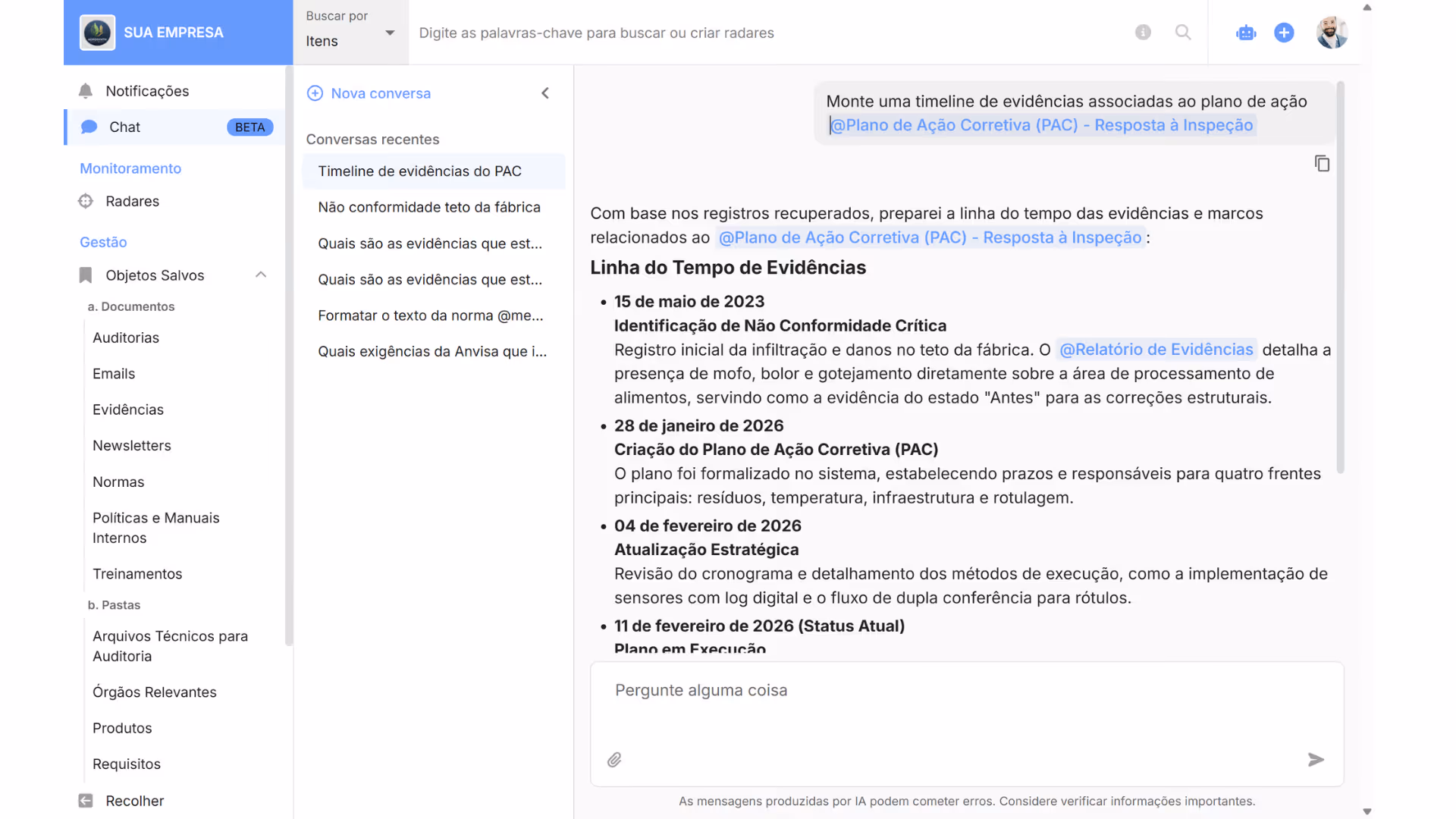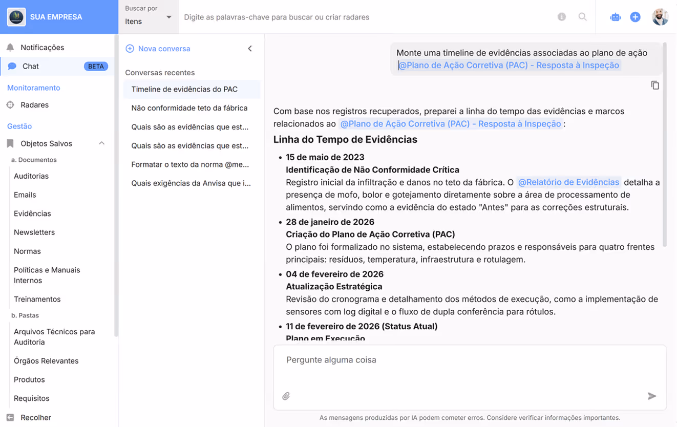 Pergunte aos documentos e encontre rápido impacto, prazo e pendências, com contexto e rastreabilidade.