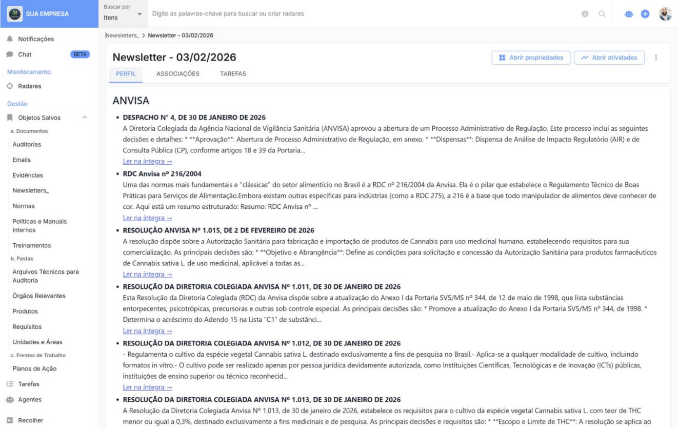 Do sinal regulatório ao fluxo: identifique cedo, entenda o contexto e já encaminhe para as áreas certas.